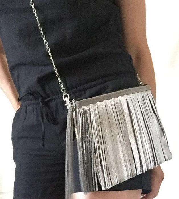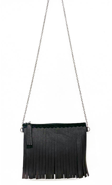 Versatile and buttery, soft the Maya leather fringe crossbody bag can be dressy or casual; day or night. Perfect around town, at dinner with friends, or a wedding. Wear as a shoulder bag, crossbody or detach the chain and use as a clutch. Room for your cell, glasses, lipstick and wallet.