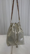 Genuine lightweight Italian and imported leather bucket style handbag with shoulder strap and drawstring top closure. Carry on your arm for hands free or place over your shoulder. Classic and versatile Audrey will take you from day to evening. Holds your wallet, cell, glasses, make-up bag, keys.