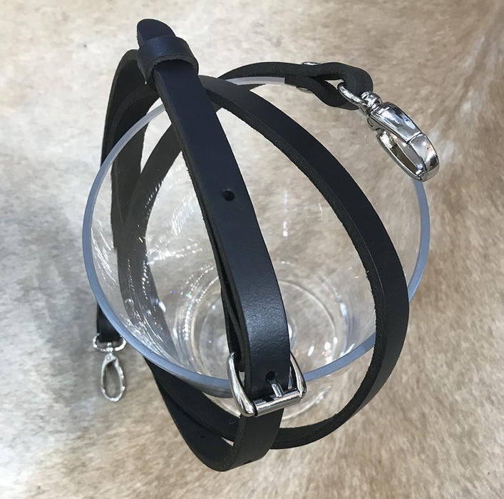 22"-25" drop on leather strap OR