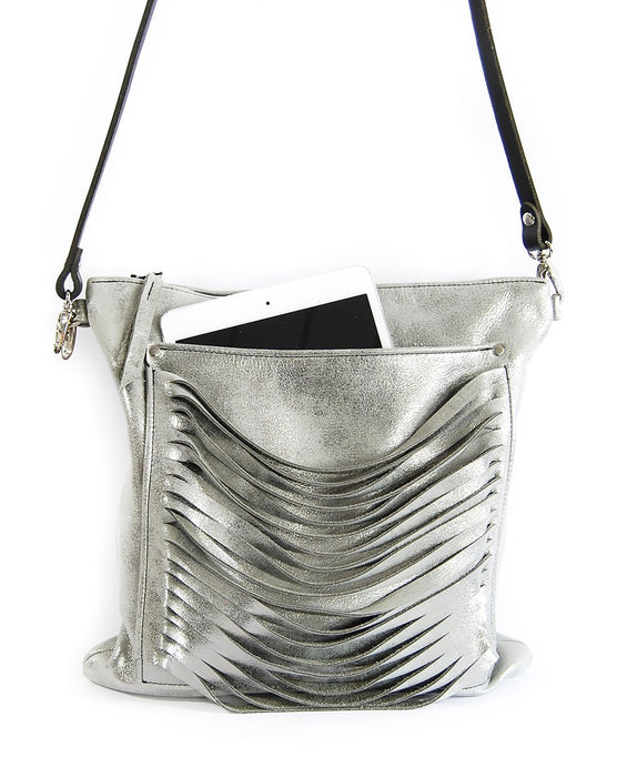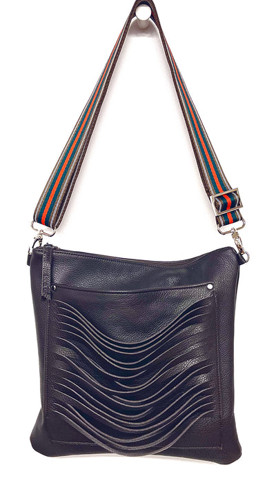 The Cleo Messenger Bag with hand cut leather detail will dress up your office attire or use as your favorite travel bag. Wear cross body or as a shoulder bag. Top zip and interior zip pocket offer security, while the open front pocket makes cell access a breeze even fits your iPad. Room for your wallet, glasses, make-up, day planner, keys ...