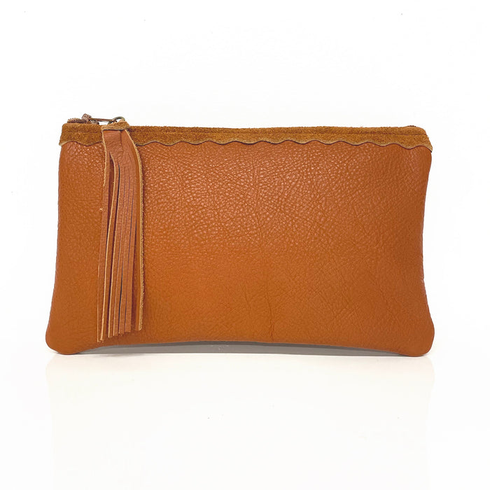 Soft leather zip pouch carries your make for a soft and luxurious makeup bag or use as a clutch holding your credit cards, lipstick and cell. Eva is handy to simply keep your handbag organized too. A special gift for you or give as a gift!