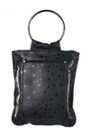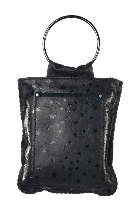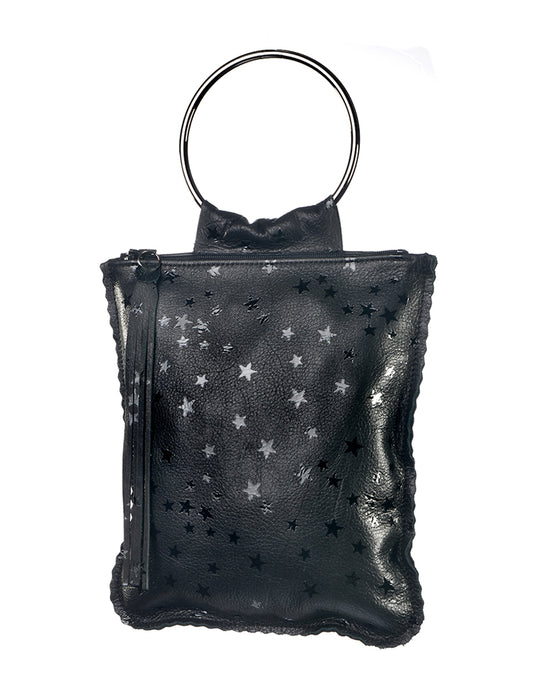 Unique genuine leather handbag with metal handle. Carry on your arm for hands free. Convenient back cell pocket and interior pocket. Clean and versatile style takes you from day to evening. Complete your look for an afternoon or night out or even at a wedding. Holds your cell, money, credit cards, glasses, lipstick, keys.