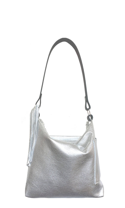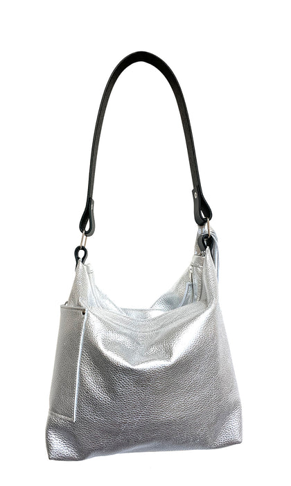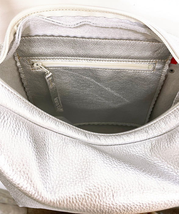 • Genuine leather with a rich silver metallic finish